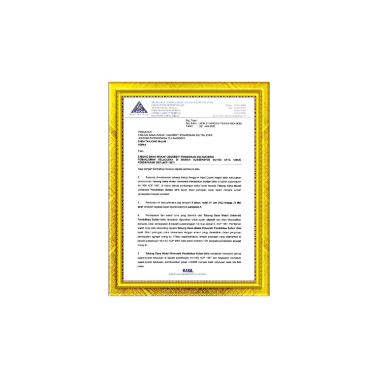 - A strategic priority in strengthening its role as a leader in charitable and philanthropic practices at Universiti Pendidikan Sultan Idris (UPSI).